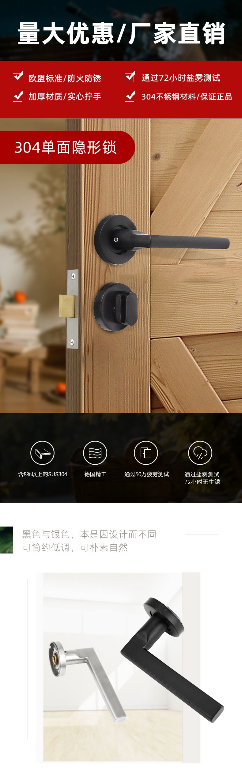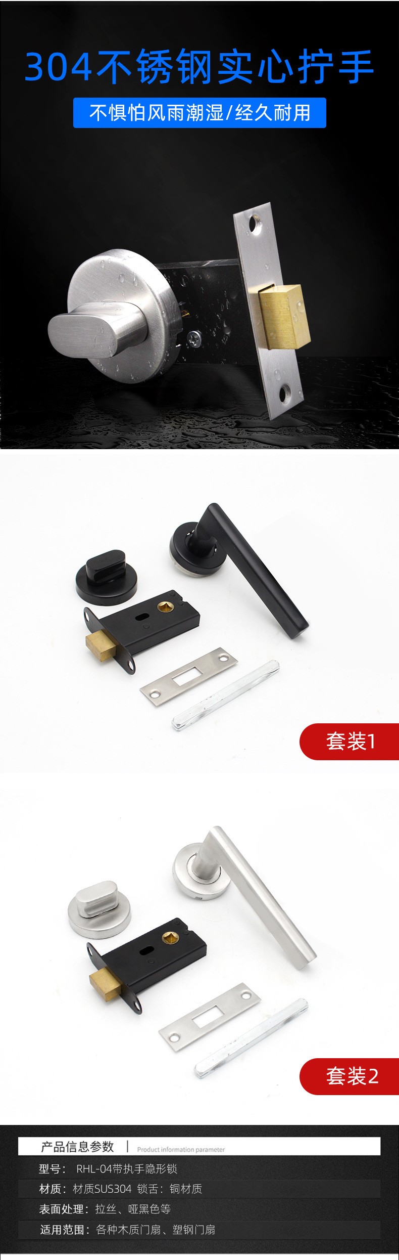 RST-07 不锈钢304美式室内门单面暗门锁