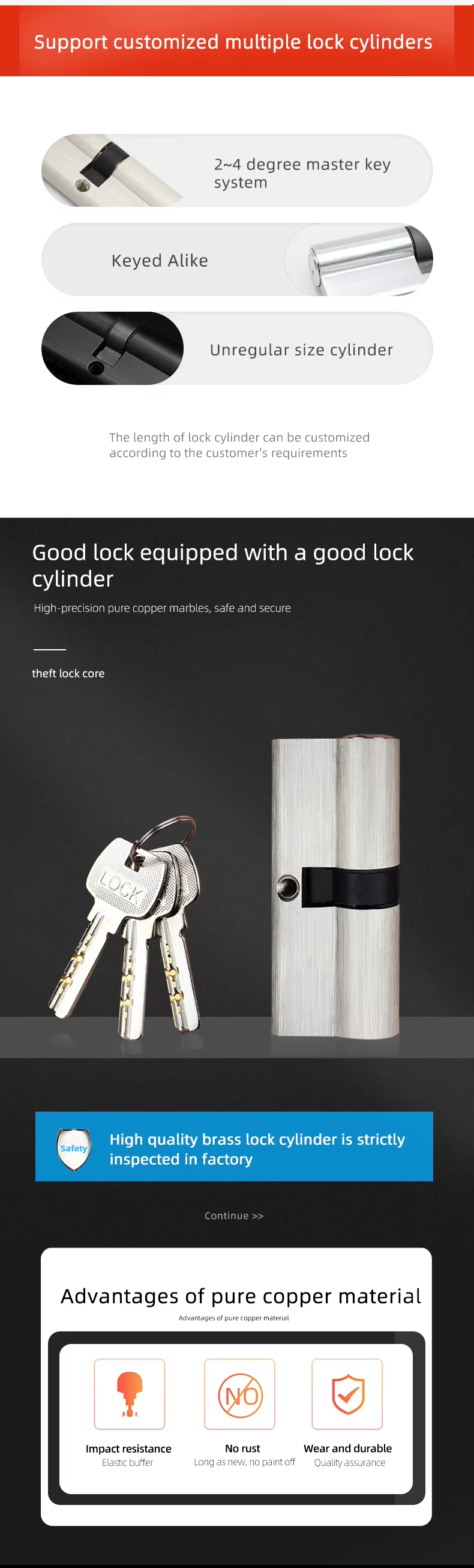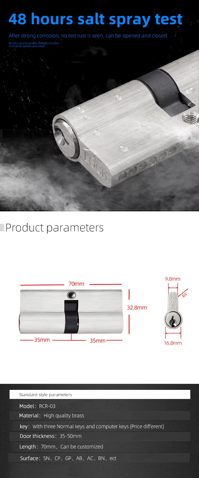 RCR-03 European Standard High Security Solid Brass Double Lock Cylinder